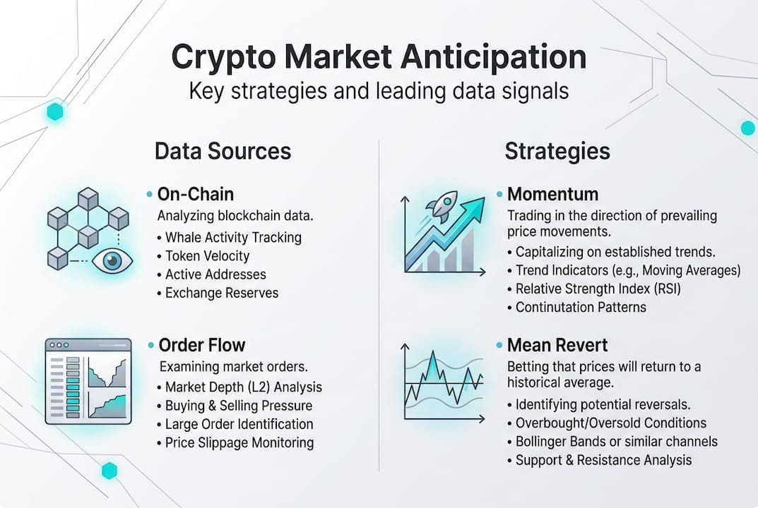 | Anticipation blends data sources | Market anticipation in crypto requires integrating on-chain, order flow, and institutional signals for a reliable edge. |